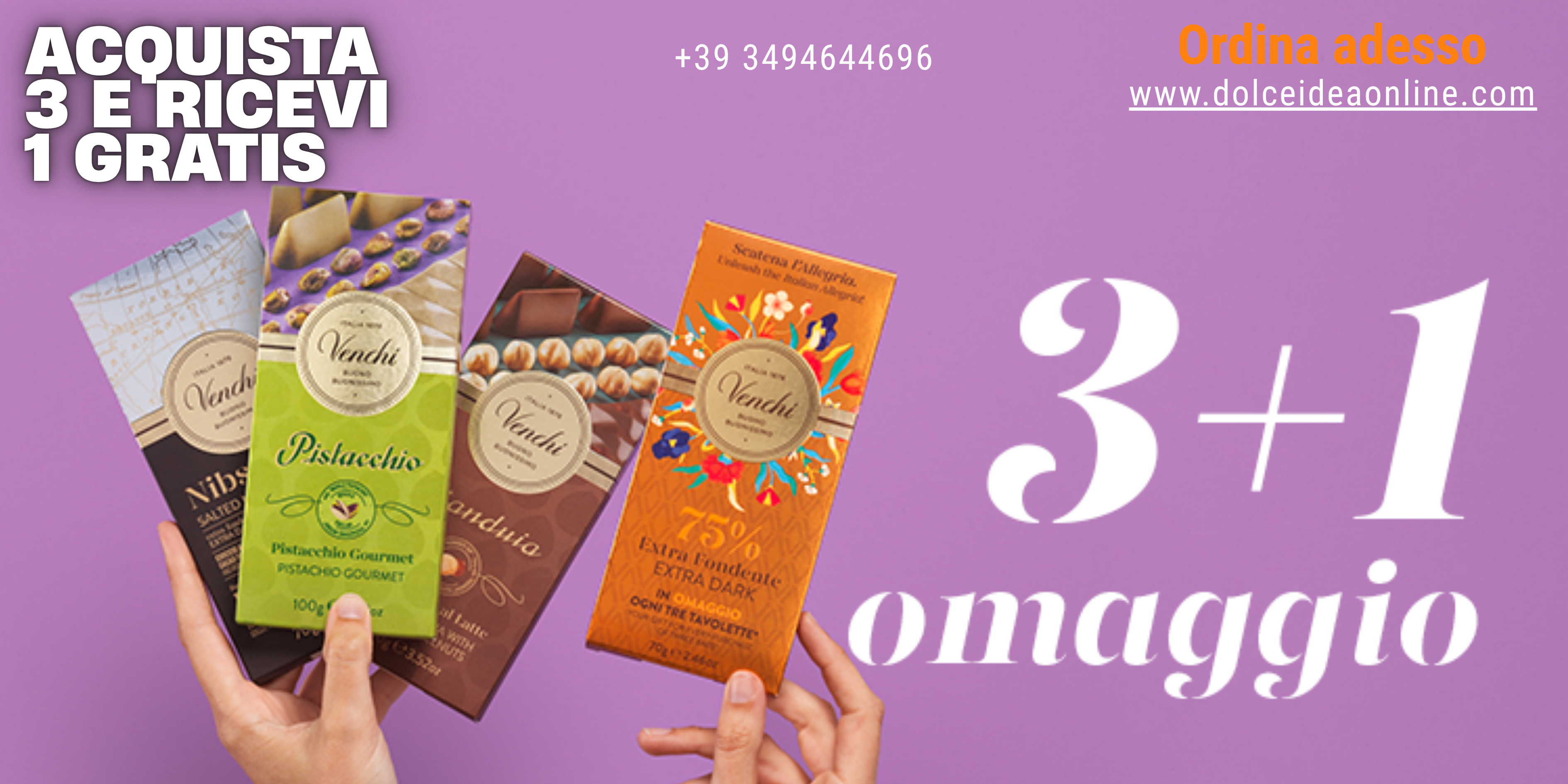 🍫 Promo Venchi 3+1 ➡️ Acquista 3 Tavolette online: te ne mandiamo GRATIS 1 extra!!! 🍫